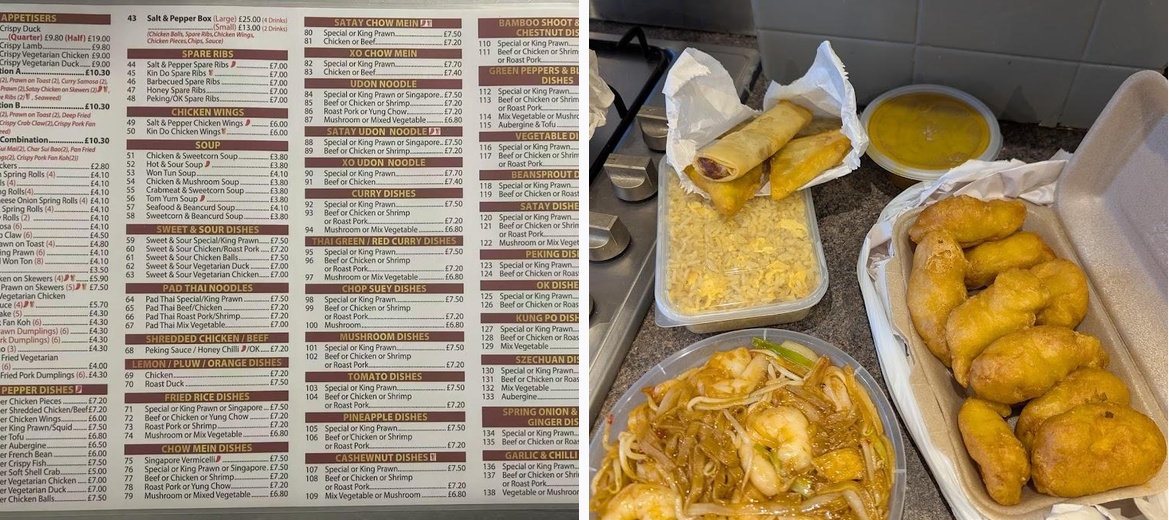 Food was amazing, lovely and hot! Amazing portion sizes, Staff were really lovely and friendly, once home thought we had the wrong order at first as there was items we didn't order but soon realised they had free on the packaging really thoughtful of them! Thankyou for a lovely meal will deffo be ordering again!